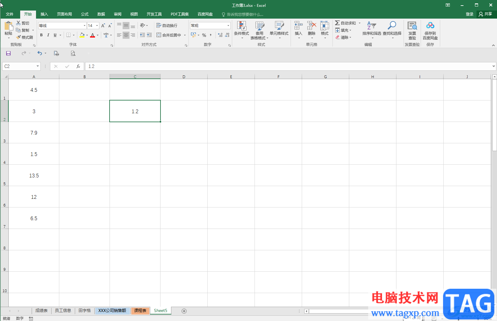 第一步:双击打开需要进行计算的Excel表格,在一个空白单元格中输入需要加的数字,比如我们这里输入1.2;
