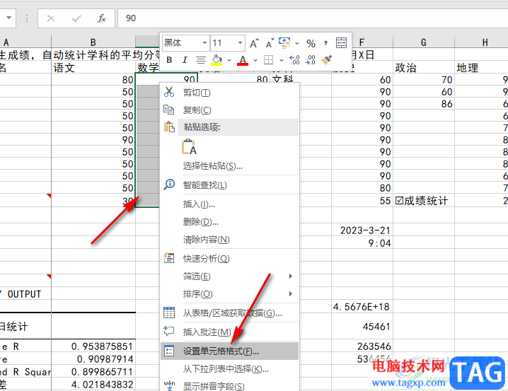 5、第五步,接着我们回到表格页面,选中需要显示数字“0”的区域,然后右键单击选择“设置单元格格式”选项