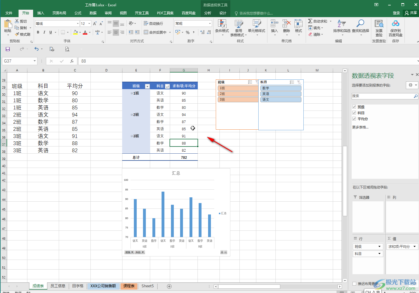 以上就是Excel表格中对数据进行排序操作的方法教程的全部内容了。点击选中数据透视表后,界面上方还会出现“数据透视表工具”,我们可以使用其中的工具进行更多编辑处理。