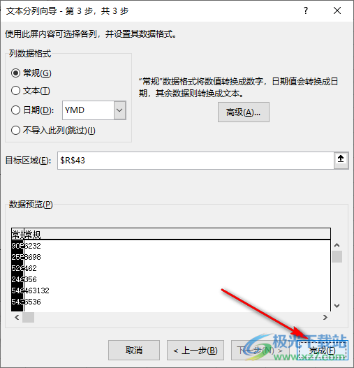 5、第五步,进入第3步页面之后,我们在该页面中直接点击“完成”选项即可,在数据预览处我们可以看到处理之后的数据样子
