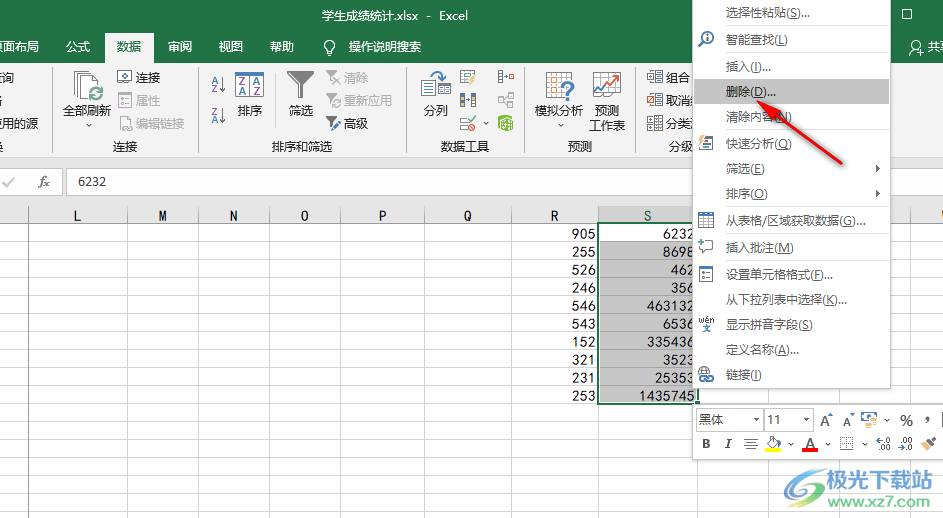 6、第六步,分列完成之后,我们在表格中将不需要的一列选中,然后点击“删除”选项即可
