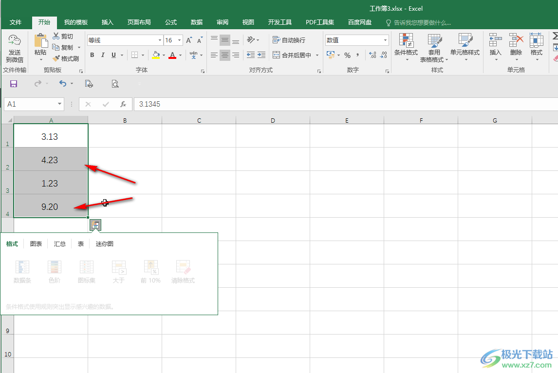 第一步:打开Excel表格,选中需要调整的数据区域;