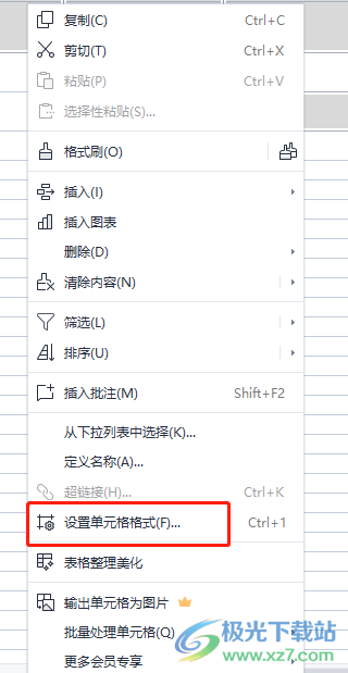 2.接着用户用鼠标右键点击单元格,在弹出来的选项卡中用户选择设置单元格格式选项,或者用户直接按下ctrl+1快捷键