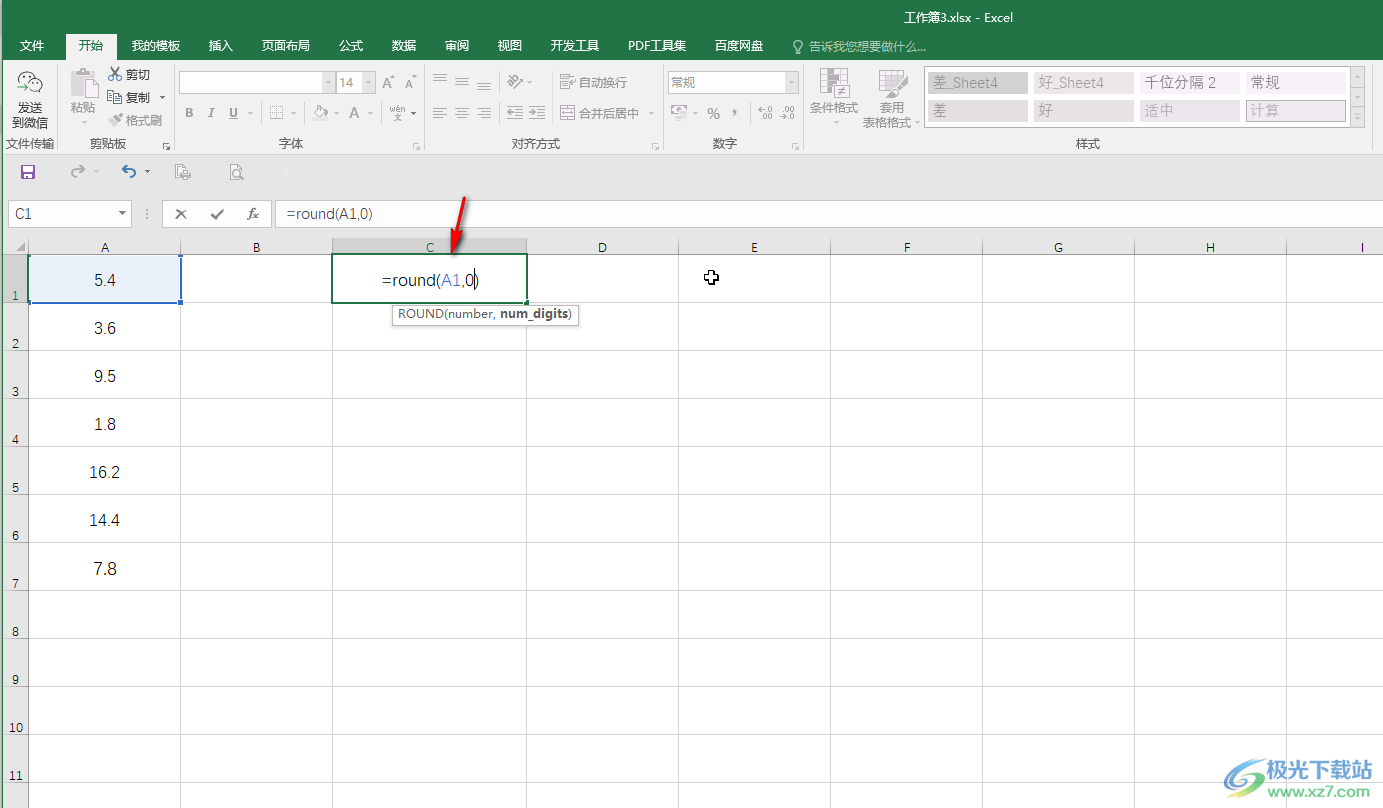 以上就是Excel表格中进行四舍五入取整的方法教程的全部内容了。另外,我们还可以在“公式”选项卡中点击“插入公式”按钮后找到并点击round函数,然后根据提示选择数据区域以及小数位数并进行确定。