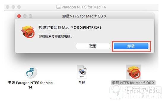 1、双击已安装版本的安装包,在向导中双击;卸载NTFS for Mac OS X”按钮。