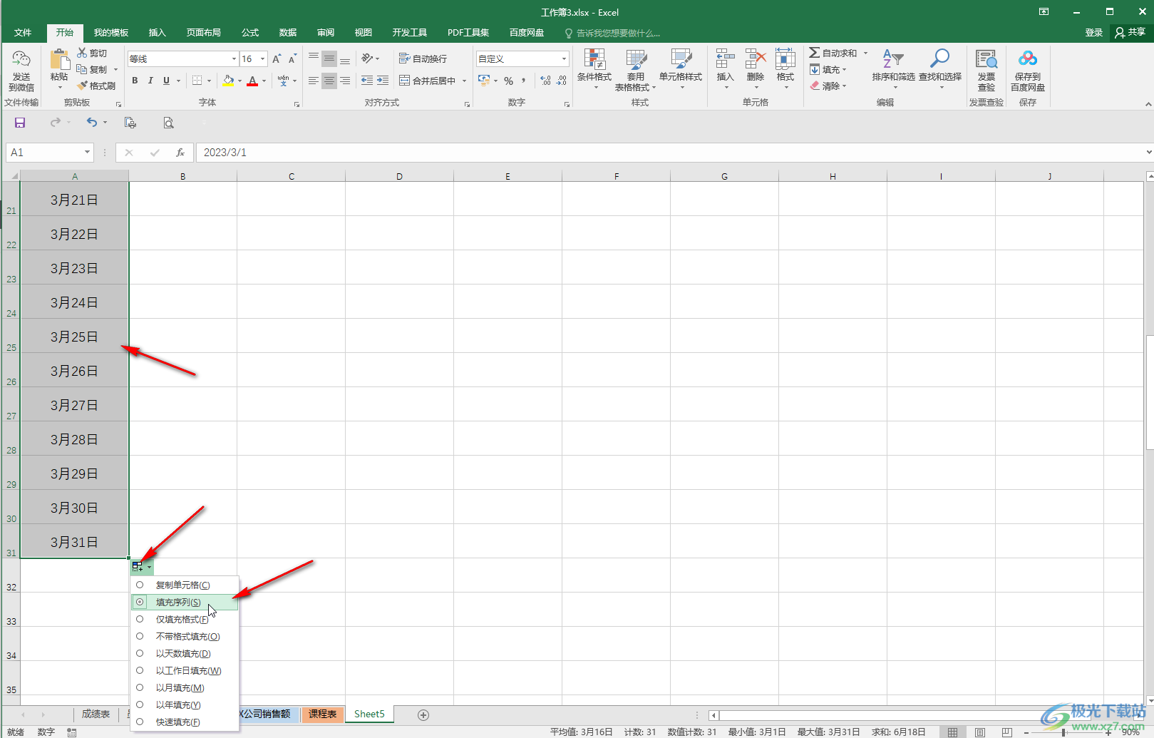 以上就是Excel表格中快速输入一个月日期的方法教程的全部内容了。以上两种方法操作起来都是非常简单的,小伙伴们可以分别尝试操作一下。