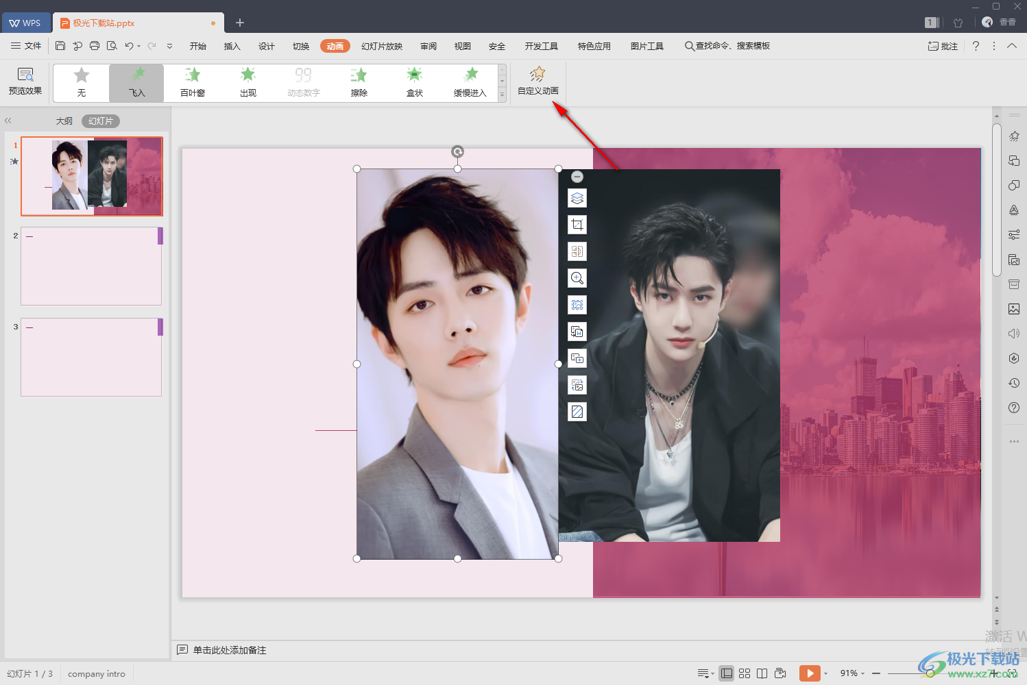 2.给图片添加了动画效果之后,点击一下【自定义动画】选项。