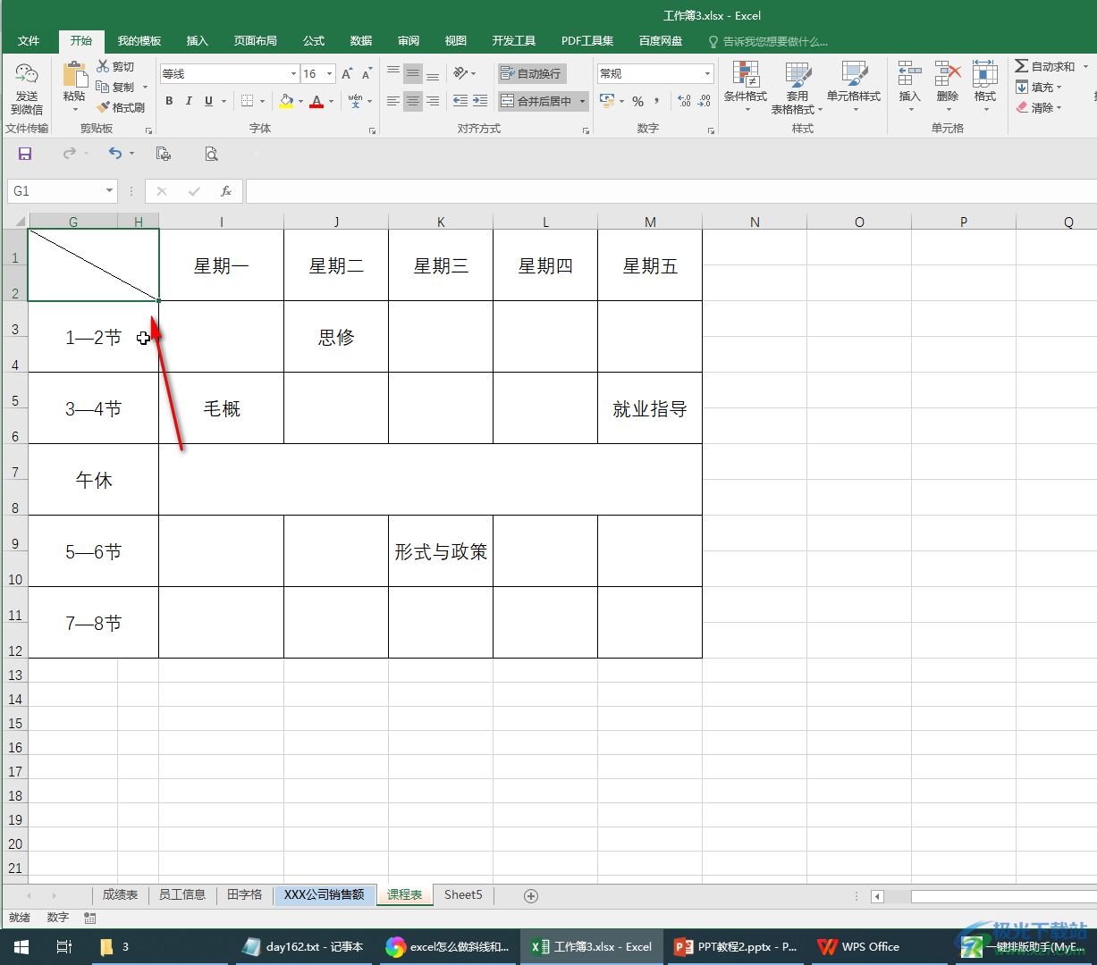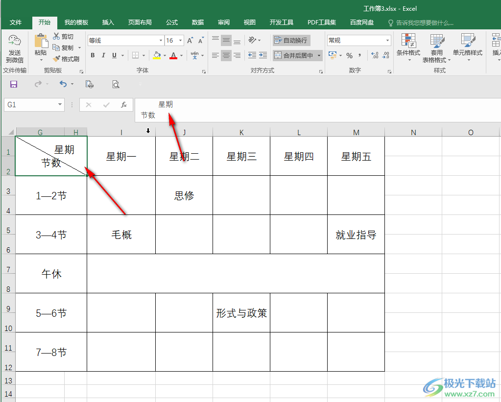 在excel表格中我们经常可以看到各种斜线输入对角字的效果,比如各种课程表左上方的单元格,会制作斜线后在斜线左右两边分别输入节数和星期等文字,或者在各种成绩表格中,会制作斜线后在斜线左右两边输入姓名和成绩等文字内容。那小伙伴们知道如何在Excel表格中制作这样的效果吗,其实制作方法是非常简单的。我们只需要在“设置单元格格式”窗口中设置斜线效果后,直接输入需要的文字内容,按Alt+enter键进行强制换行,就可以得到想要的效果了,我们也可以通过“开始”选项卡中的“边框”按钮找到“绘制边框”功能自行绘制斜线。接下来,小编就来和小伙伴们分享具体的操作步骤了,有需要或者是感兴趣的小伙伴们快来和小编一起往下看看吧!