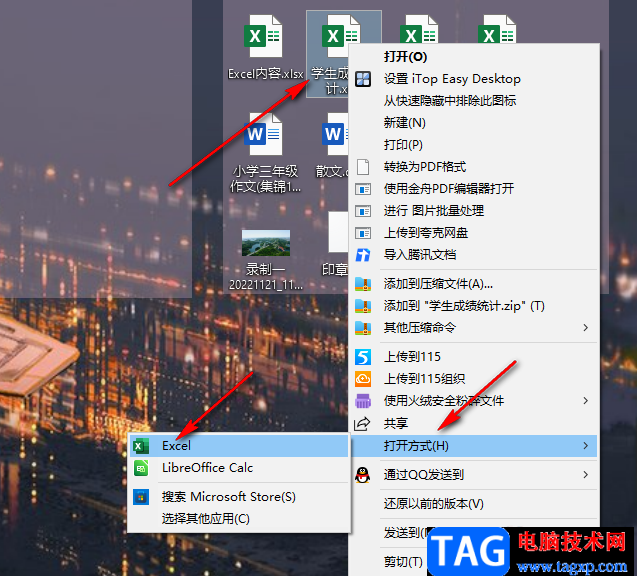 1、第一步,我们先在电脑中找到我们需要编辑的表格文档,然后右键单击选择“打开方式”选项,再选择“Excel”