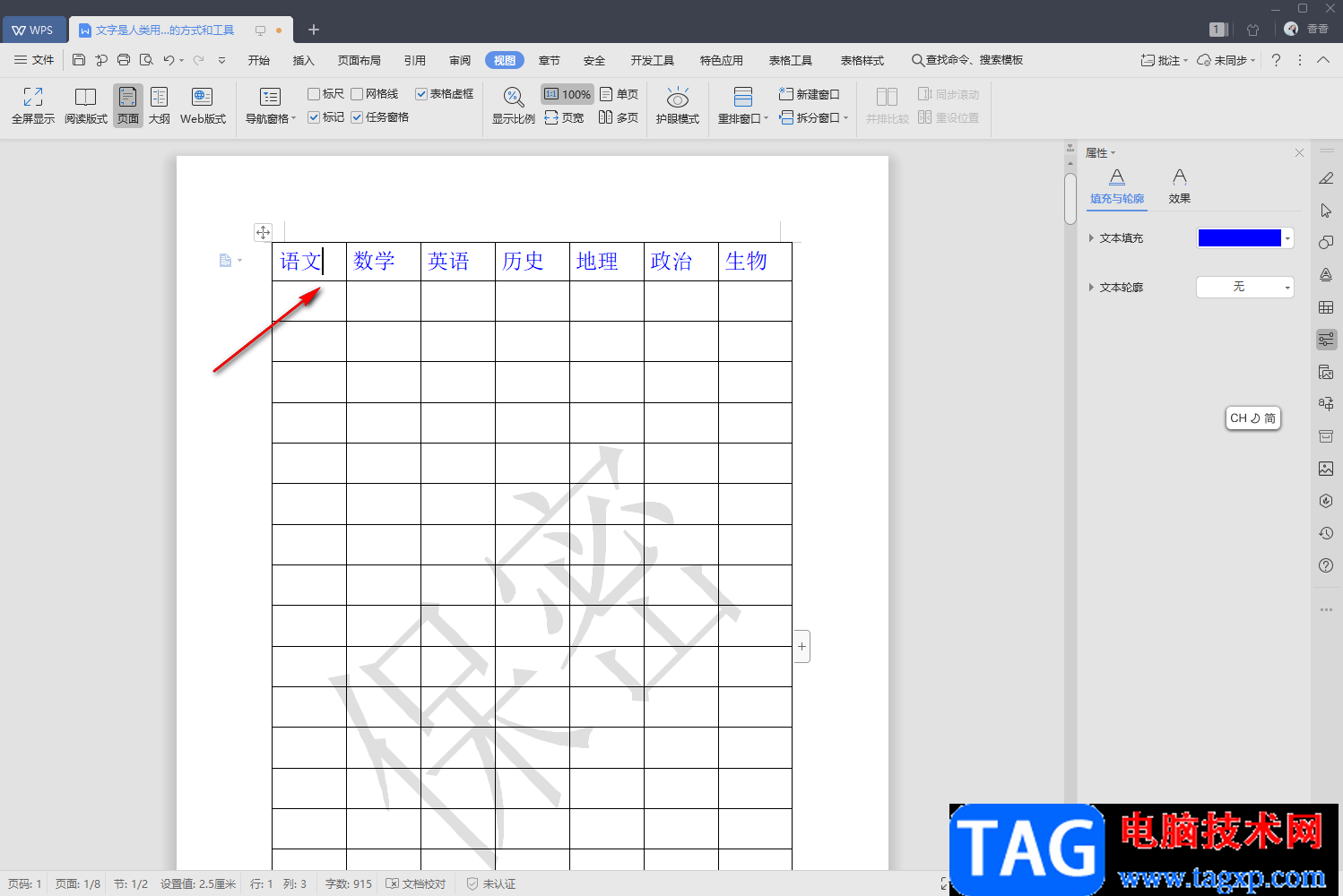 1.首先我们需要将文档打开,然后你可以看到我们的文档中的表格中有我们制作好的标题。