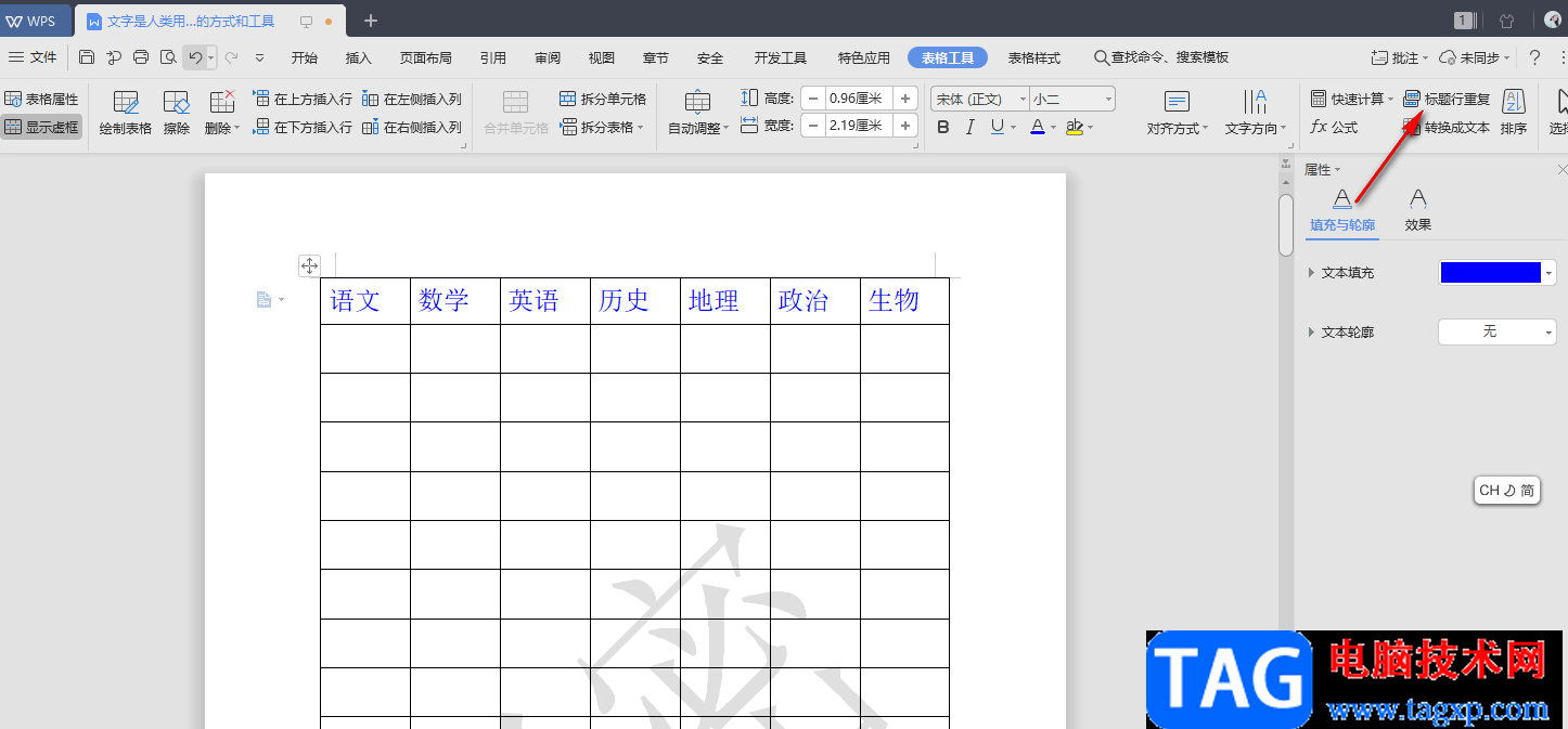 3.接着我们再将鼠标移动到上方的【表格工具】选项位置进行点击。