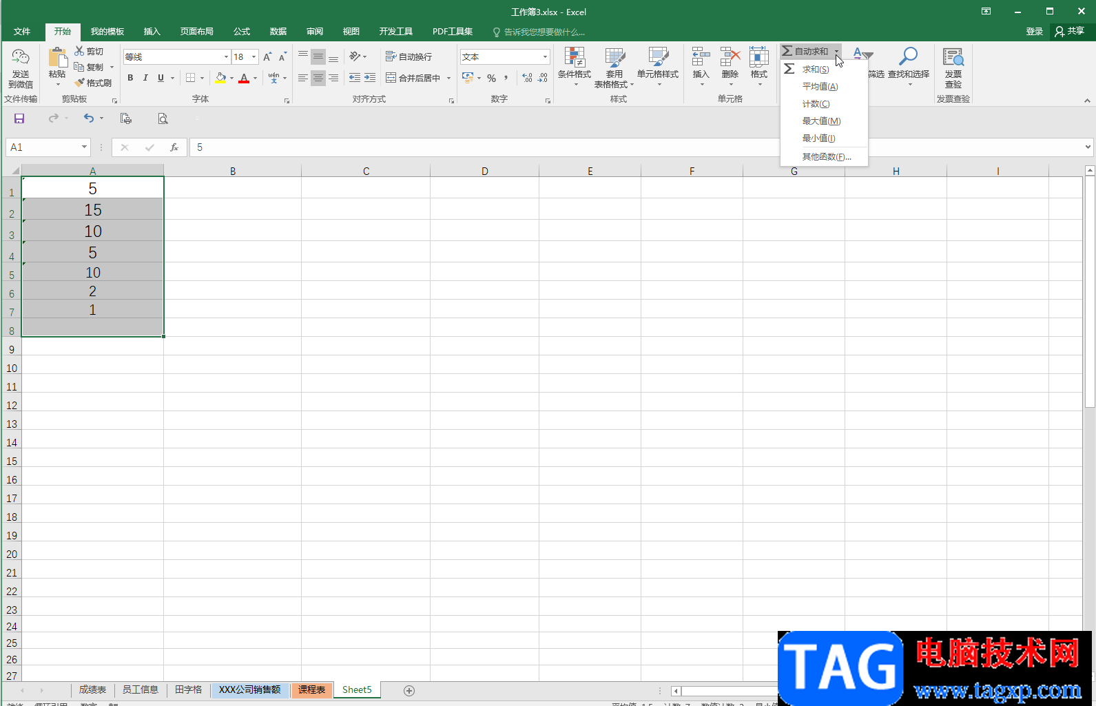 在excel表格中有一个“自动求和”功能,其中包含“求和,平均值,计数,最大值,最小值”等功能,使用这些功能我们可以快速进行一些基础的运算。但是有的小伙伴发现自己在Excel表格中使用自动去和功能进行计算时,结果会出错。那小伙伴们知道遇到这种情况该如何解决吗,其实这种情况通常都是数字格式不对导致的。我们只需要将文本型的数字转换为正常的数字格式,就可以成功进行正常的计算了。只需要在Excel表格中选中数据内容后,点击自动出现的黄色图标,然后点击“转换为数字”就可以了,非常地简单。接下来,小编就来和小伙伴们分享具体的操作步骤了,有需要或者是感兴趣的小伙伴们快来和小编一起往下看看吧!