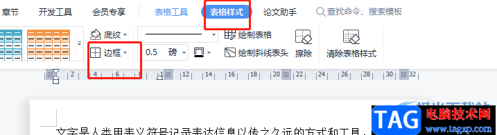 2.这时页面上方的菜单栏中会显示出表格样式选项,用户点击该选项,下方会弹出相关的功能选项,用户选择边框选项