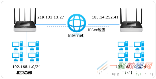 IPSec VPN可以让我们上国外网站了,现在小编进个gg都无法进入了,下面我们来看IPSec VPN设置指南,设置好了即可上网了哦。应用介绍 IPSec VPN可以用于建立两个站点之间的安全隧道,经常用于企业总部和分支机构的网络对接。本文以某公司北京总部与广州分部需要搭建安全隧道为例,介绍使用WVR系列企业级无线路由器搭建IPSec VPN的设置方法。