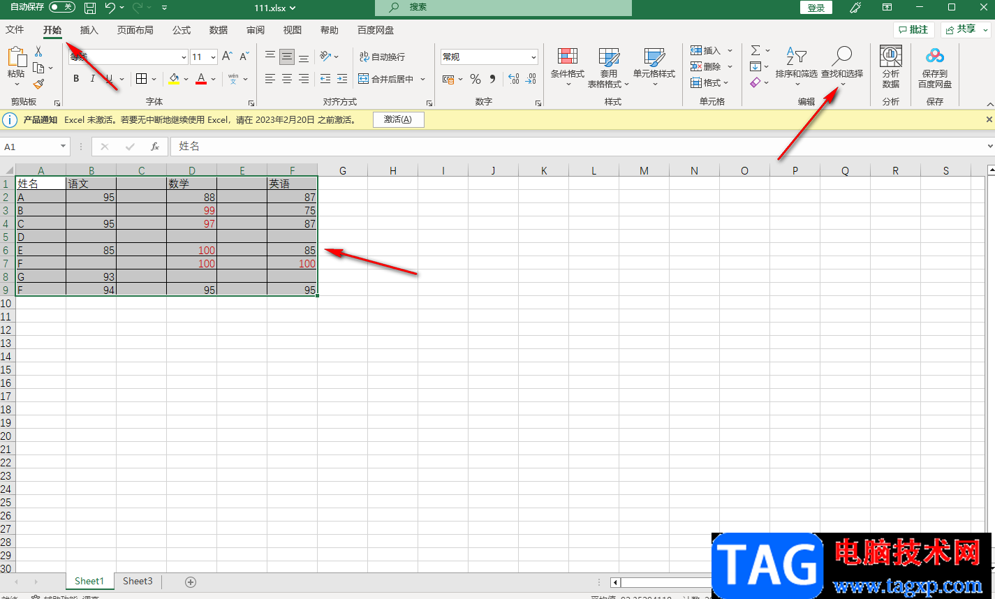 3.如果是表格中导出都有空白的这种情况,那么我们可以点击【开始】菜单下的【查找和选择】。