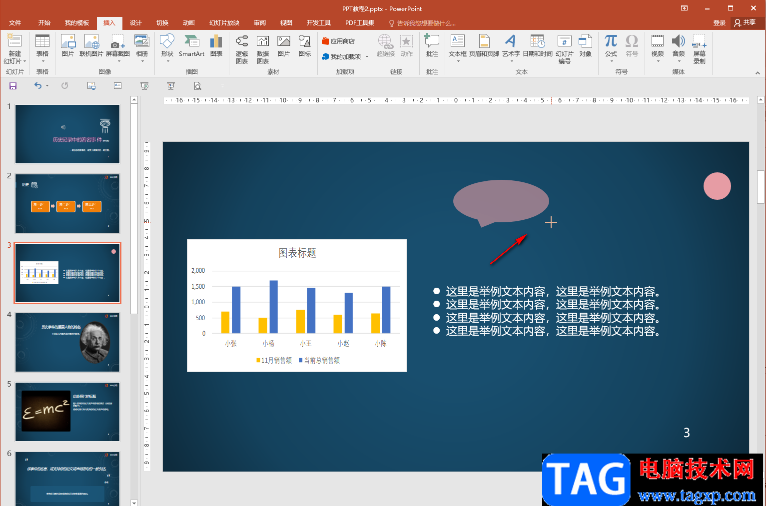 在powerpoint演示文稿中有一个“插入”选项卡,在其中我们可以为幻灯片添加表格,图片,形状,smartart,图表,逻辑图表,数据图表,图标,批注,文本框,页眉和页脚,艺术字,日期和时间,幻灯片编号,对象,公式,符号,视频,音频等内容。插入后还可以在自动出现的相同工具下进行基础的编辑和处理,非常地方便。如果我们需要在幻灯片中插入椭圆形标注,小伙伴们知道具体该如何进行操作吗,其实操作方法是非常简单的。我们只需要在“插入”选项卡中点击“形状”按钮后在“标注”栏点击椭圆形标注,然后在界面中进行绘制就可以了。接下来,小编就来和小伙伴们分享具体的操作步骤了,有需要或者是感兴趣的小伙伴快来和小编一起往下看看吧!