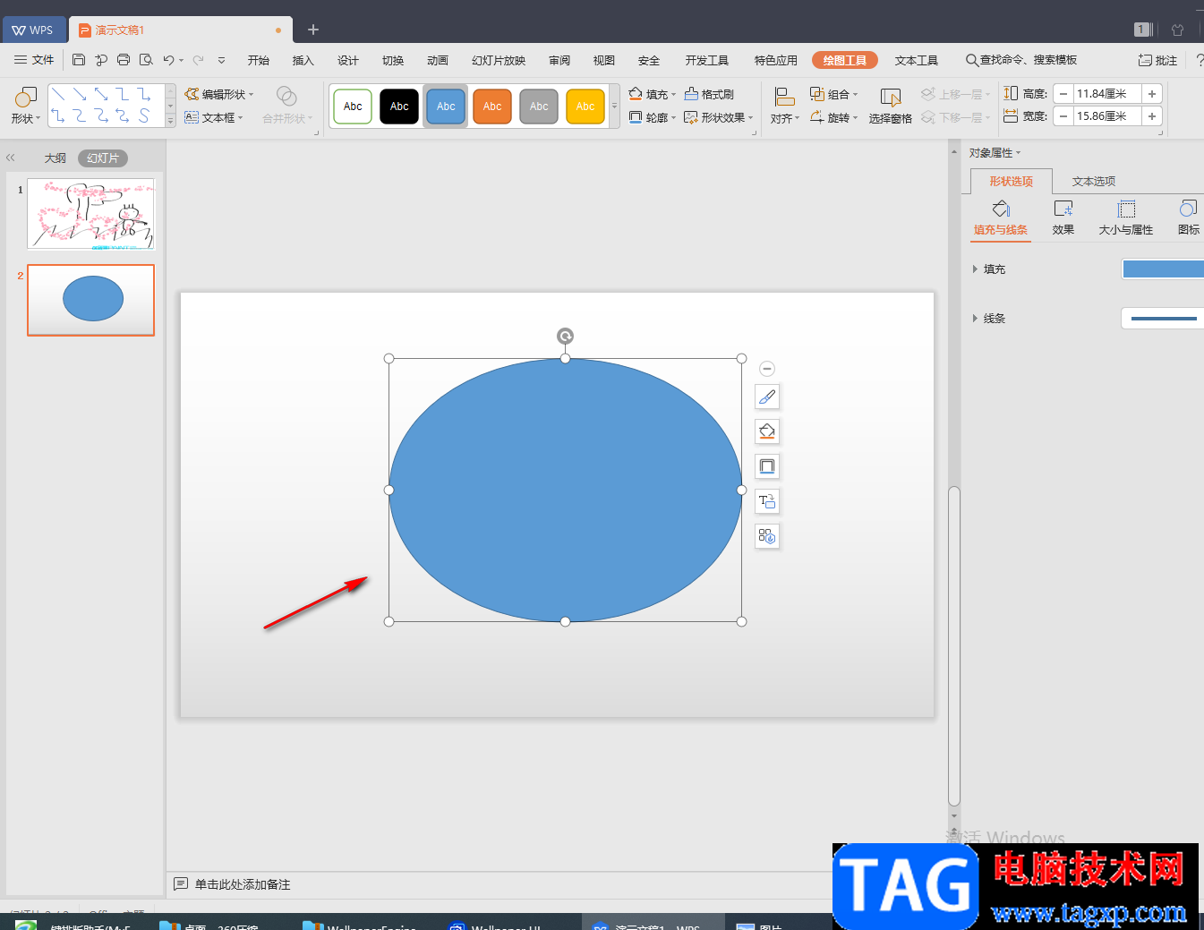 2.当我们选择好形状之后,你需要用鼠标左键将图形画在幻灯片中,如图所示。