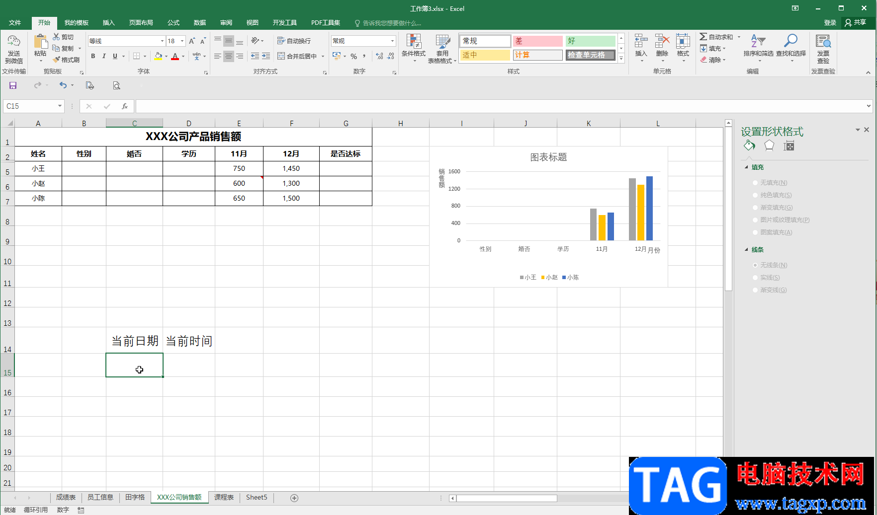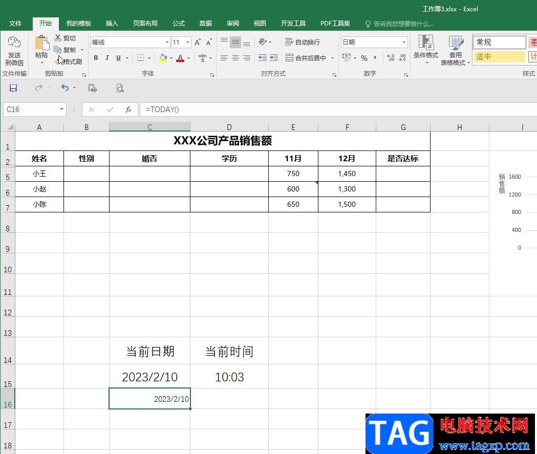 第五步:可以看到成功添加了当前日期;
