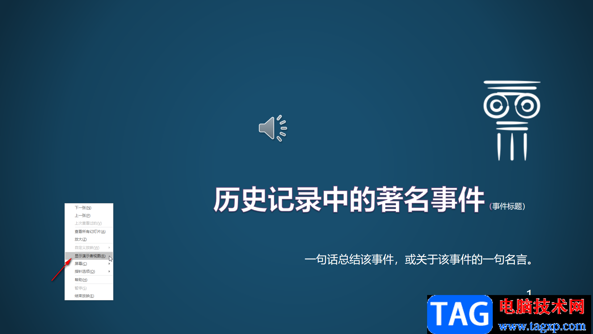 第六步:就可以看到备注信息了,只会自己看到而观众是看不到的,在右下方还可以调整备注的字号大小,后续可以按ESC键退出放映视图。
