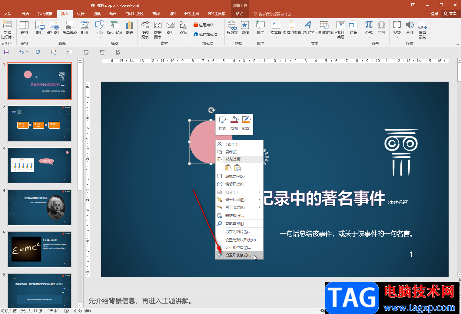 第三步:选中绘制的图形右键点击一下,在子选项中点击“设置形状格式”;