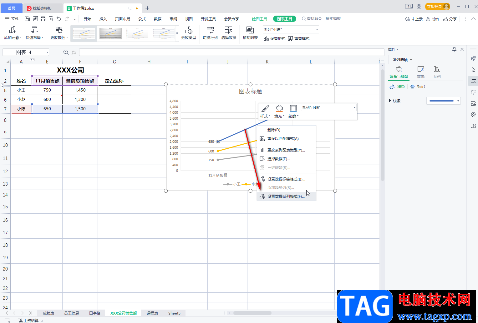 第六步:在图表中双击某个图表元素可以在打开的侧边栏中进行详细的设置,也可以右键点击后在子选项中进行设置。