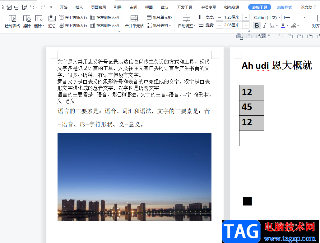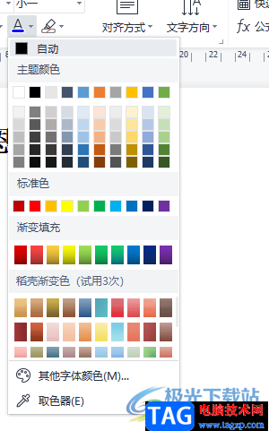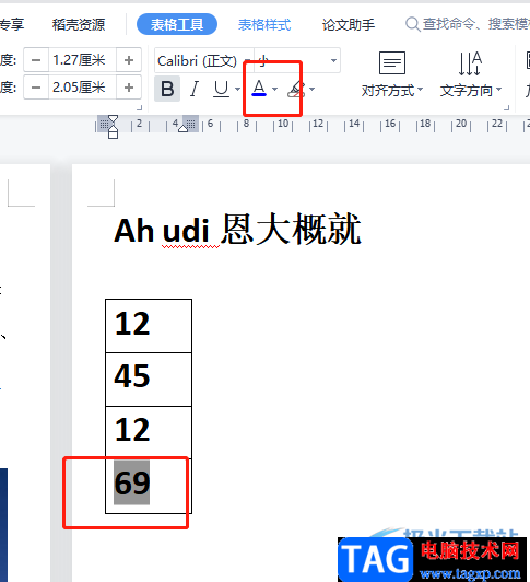 5.用户还可以根据自己的需求来标红计算结果,选中结果后在页面上方的表格工具选项卡中选择字体颜色图标