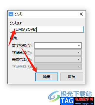 3.这时会打开公式窗口,其中的公式输入栏中会自动填入sum公式,用户检查公式是否正确后直接按下确定按钮