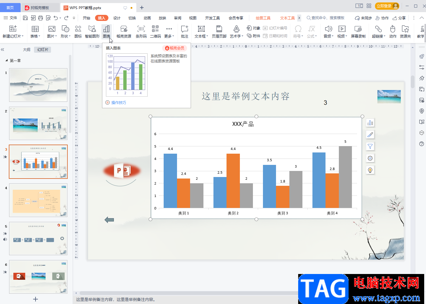 在wps中制作幻灯片时,我们可以像在powerpoint演示文稿中一样进行各种编辑设计。比如我们可以在其中插入图表并对图表进行调整设计等等。如果我们在电脑版WPS