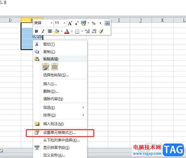 2.接着用鼠标右键点击数据,在弹出来的菜单中,用户选择其中的设置单元格格式选项