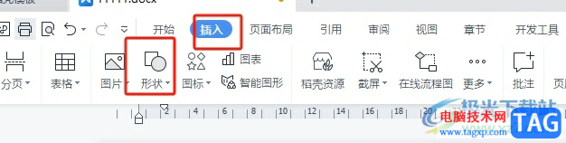 5.或者用户在菜单栏的插入选项卡中,找到并点击形状选项,可以看到弹出来的下拉选项卡