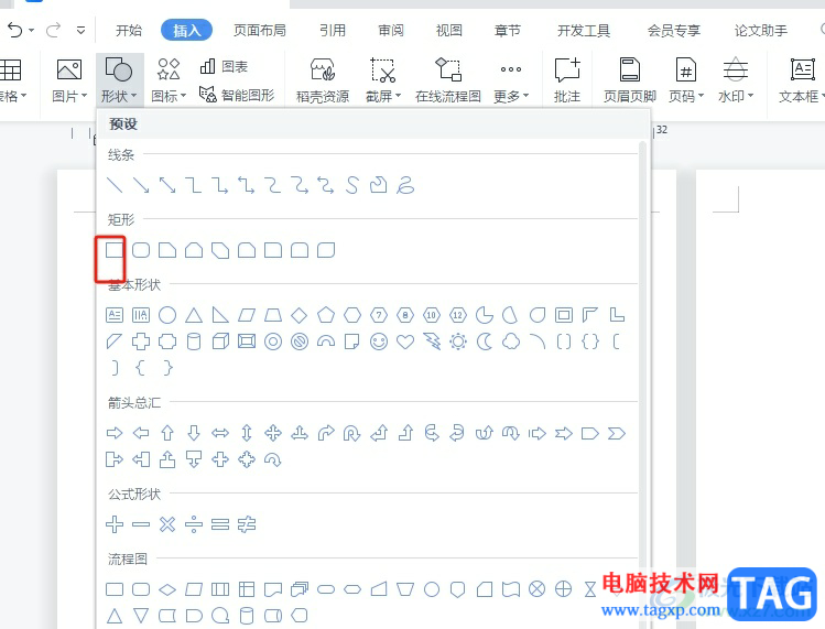 6.在下拉选项卡中用户可以看到弹出来的形状素材,用户选择其中的矩形选项