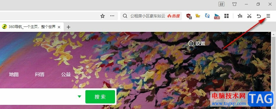 1、第一步,我们点击打开360极速浏览器之后,在页面右上角点击打开“三”图标