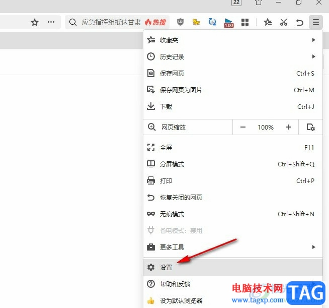 2、第二步,打开“三”图标之后,我们在下拉列表中再点击打开“设置”选项
