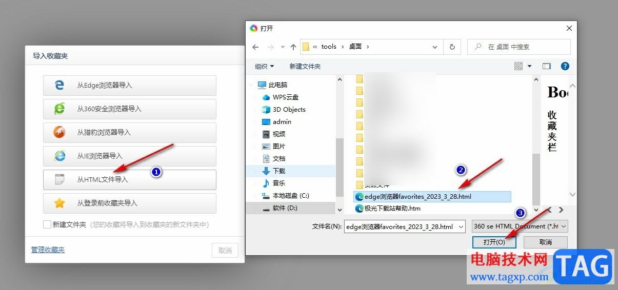 5、第五步,接着我们在弹框中选择“从HTML文件导入”选项,然后在文件夹页面中找到准备好的文件夹,最后点击打开选项即可