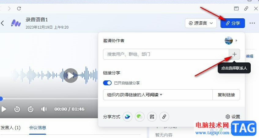 以上就是小编整理总结出的关于飞书妙记添加协作者的方法,我们在飞书的妙记页面中点击打开一个视频,然后在视频编辑页面右上角打开分享选项,再在下拉列表中点击“+”图标,接着我们在弹框中点击勾选自己需要的协作者,最后点击确认选项即可,感兴趣的小伙伴快去试试吧。