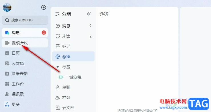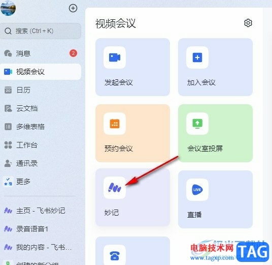 1、第一步,我们在飞书页面中找到视频会议选项,点击打开该选项