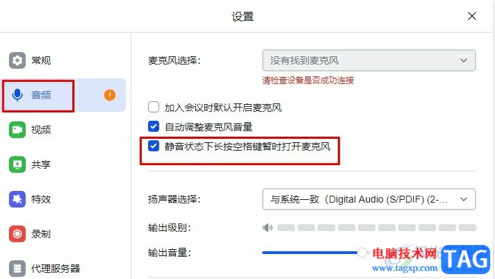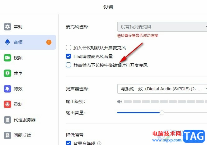 5、第五步,最后我们将“静音状态下长按空格键暂时打开麦克风”选项点击勾选即可