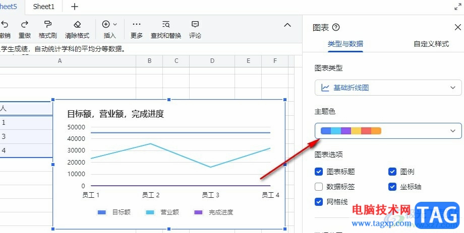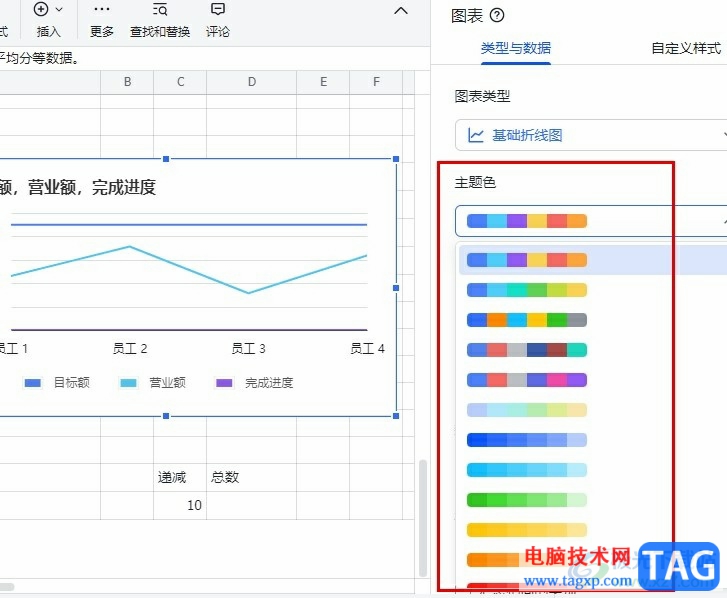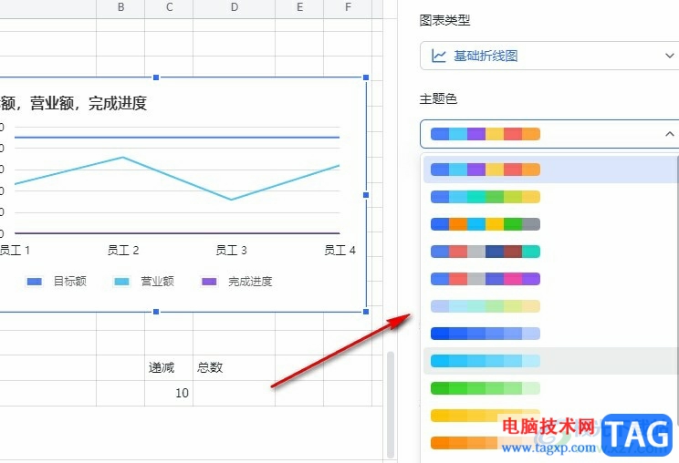 4、第四步,打开图表编辑窗格之后,我们在窗格中点击打开主题色选项