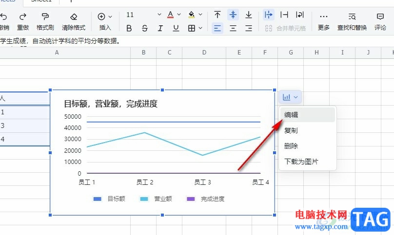 3、第三步,进入表格文档编辑页面之后,我们在该页面中右键单击图表,然后在菜单列表中选择“编辑”选项
