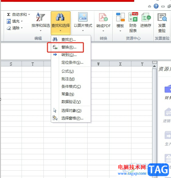 3.接着会拓展出下拉选项卡,用户选择其中的替换选项,将会打开新窗口