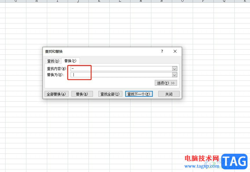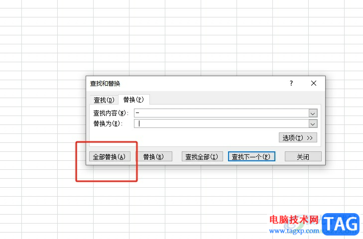 4.在打开的查找和替换窗口中,用户将查找内容设置为-,接着在替换为方框中按下空格键