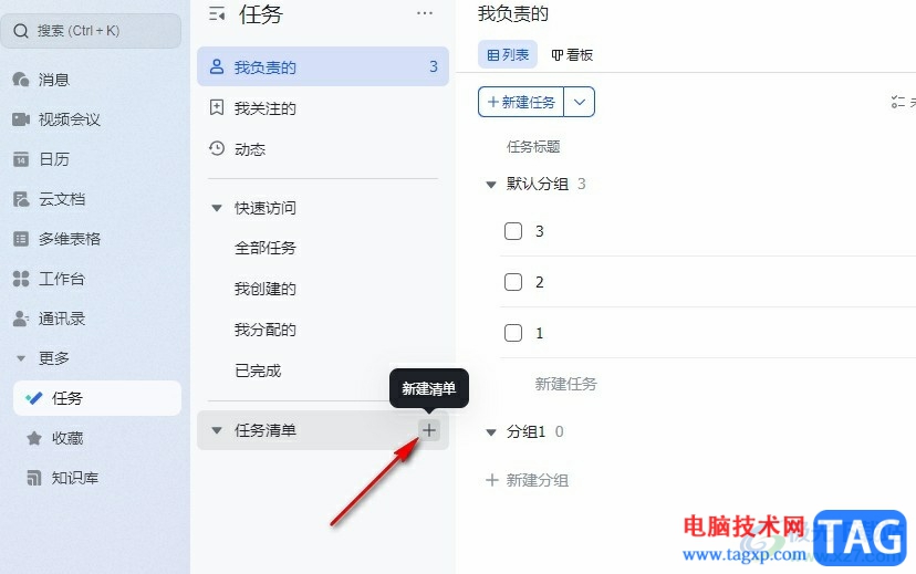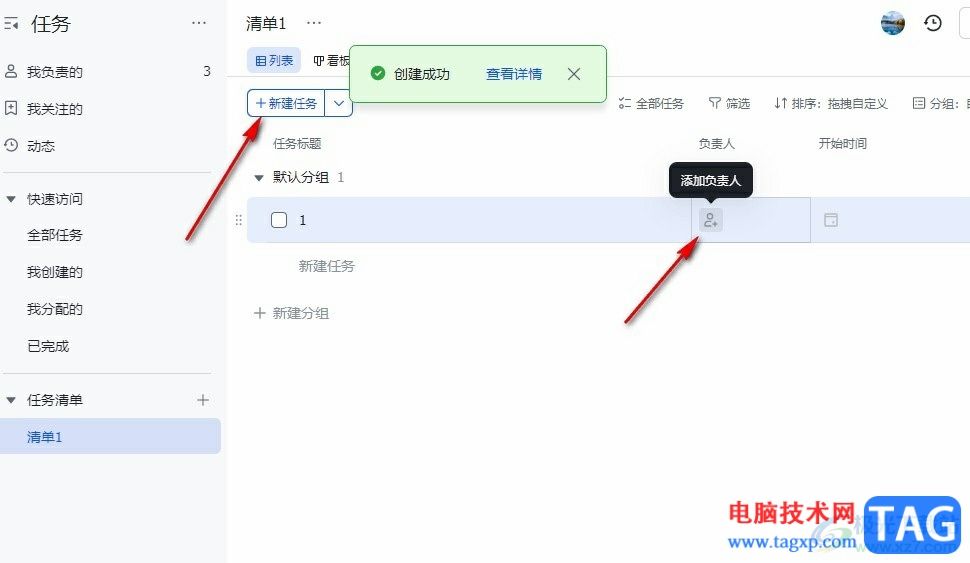 4、第四步,我们创建一个新的清单,然后在该清单中新建任务,再完成任务的分配