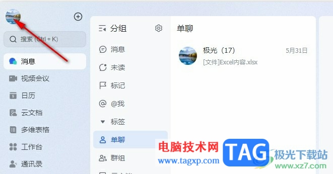 1、第一步,我们先在飞书的左上角找到自己的头像,然后点击打开该头像