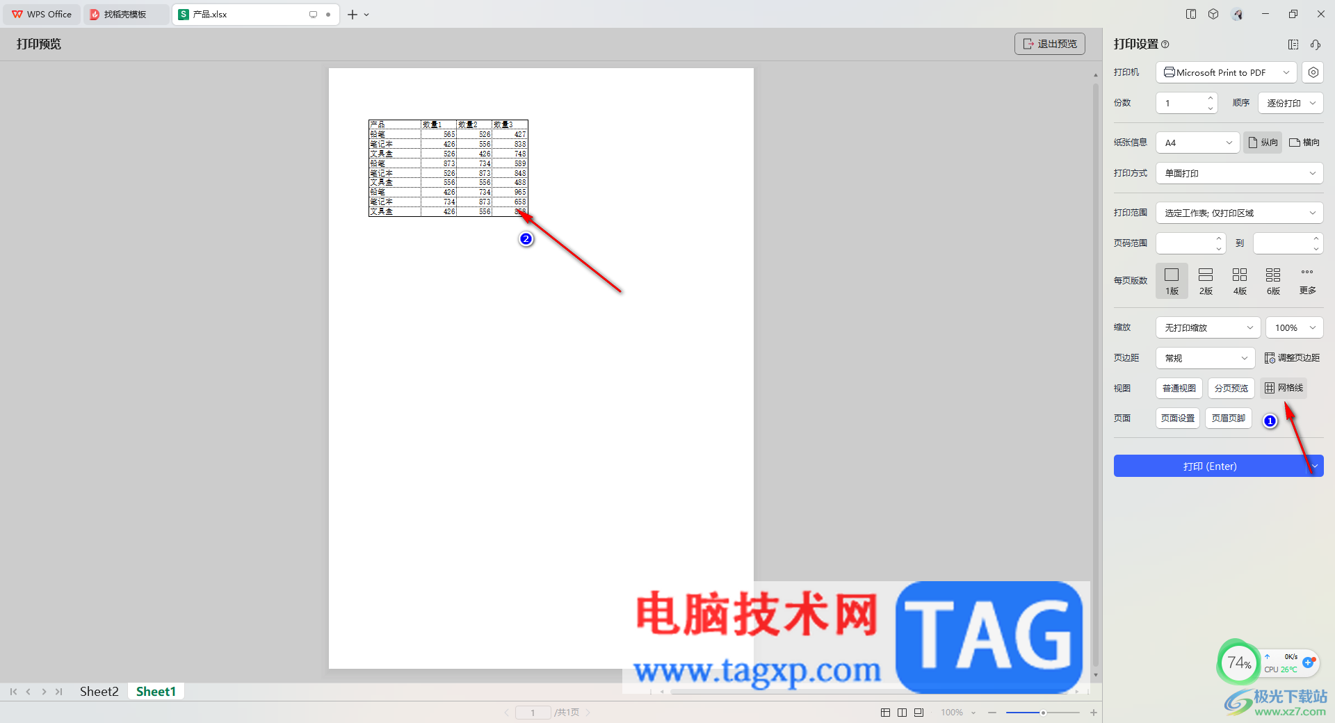 有的小伙伴在使用wps进行表格打印的时候,发现打印的表格内容没有网格线显示,那么打印出来的内容就不会很美观,那么如何打印网格线呢,其实我们可以进入到打印预览的窗口中进行设置即可,一般我们在进行打印表格的时候,我们可以进入到打印预览的界面中进行查看一下效果,之后在打印预览的窗口中根据自己的需求来设置相应的参数,其中就可以对网格线进行启用或者取消操作,下方是关于如何使用WPS excel设置打印网格线的具体操作方法,如果你需要的情况下可以看看方法教程,希望对大家有所帮助。