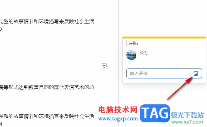 4、第四步,打开评论工具之后,我们在右侧的评论区页面中点击评论框中的图片图标