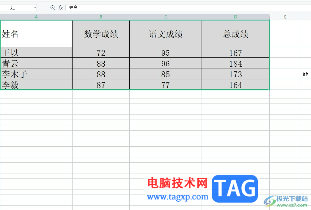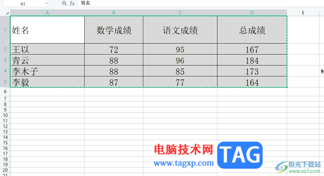 2.接着用户按下ctrl+c快捷键来复制表格,可以在表格四周看到出现的蚂蚁虚线