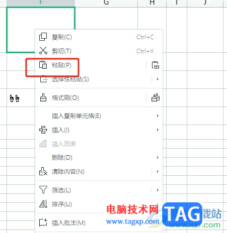 3.然后用户找到需要粘贴表格的单元格,并用鼠标右键点击,选择其中的粘贴选项,或者直接按下ctrl+v快捷键来粘贴