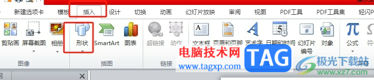 2.接着在页面上方的菜单栏中点击插入选项,将会显示出相关的选项卡,用户选择其中的形状选项