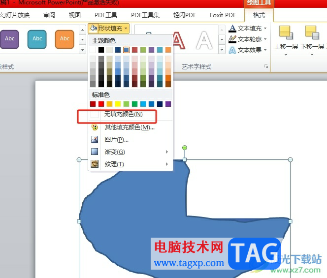 5.可以看到弹出来的下拉选项卡中,用户选择其中的无填充颜色选项即可解决问题