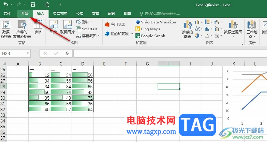 2、第二步,进入Excel页面之后,我们在页面上方的工具栏中点击打开“开始”工具